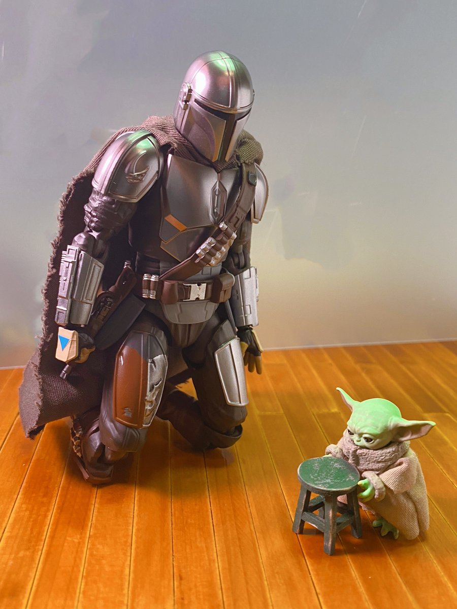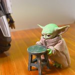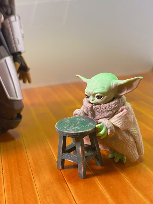 マンダロリアンチャプターX 「グローグーの椅子」 ドールハウスミニチュアショウで作家さんからお迎えした小さなスツールがもしや…と思ったらぴったりー🙆 塗装の感じも作りも素敵です😆 #東京ドールハウスミニチュアショウ #オモ写 #TheMandalorian #Grogu
