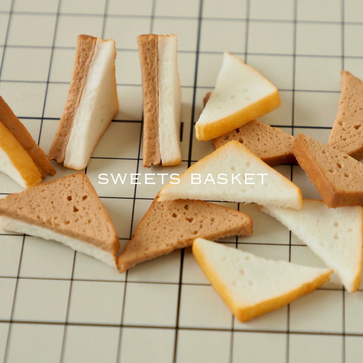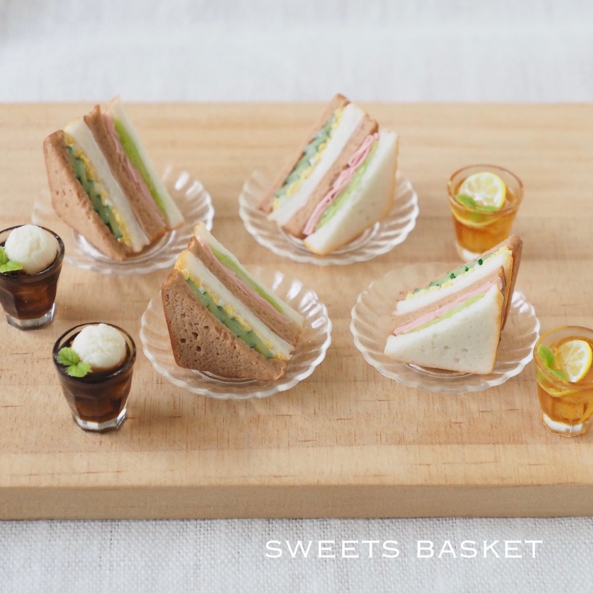 「三角サンドイッチセット」🥪🆕 具材は以前のと同じですが今度はホワイト、ブラウン2色の食パンで作りました😊 こちらのセットは6月8日(土)のミニチュアショウで販売させていただきます🙇♀️ #東京ドールハウスミニチュアショウ