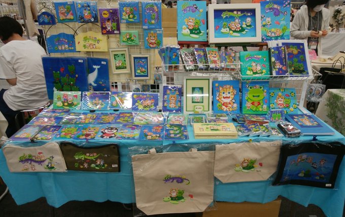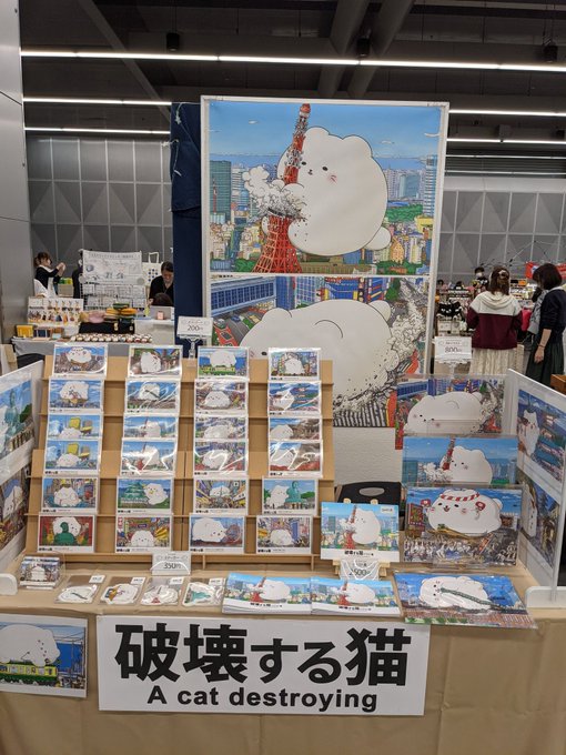 #東京ハンドメイドマルシェ 開場していました〜!! 会場にてまるねこさんのミニ原画描きました! 今週末の #瀬戸内ハンドメイドマルシェ から展示販売しますb twitter.com/frankenji/stat…