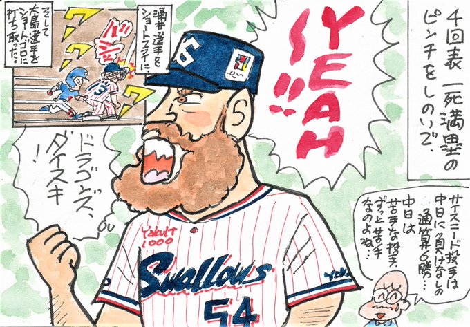 4月18日 ヤクルト対中日より 中日に強いですね~~! この試合も、6回無失点8奪三振! いいピッチャーです!中日ファンとしては、トホホです。 #サイスニード #東京ヤクルトスワローズ