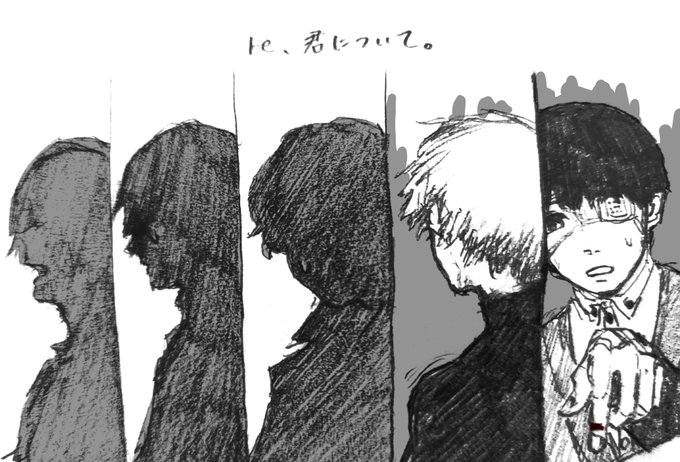 #東京喰種版深夜の真剣お絵描き60分一本勝負 『:Re』 素敵だな楽しそうだなと思いつつ傍から見ていただけですが初めて失礼させていただきます :Reはラテン語由来で、「〜について」という意味もあるそうで。 ずっと僕の 王 である 君 について 帰り を待っている