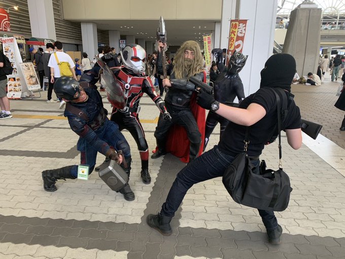 ちょまちょまちょま!!! 俺1人相手に本気になりすぎー!!!💦 銃をものともしない本物のヒーロー達め、、完敗です。 ご本人様に届きますように🙏 #レンタル悪党 #東京コミコン #東京コミコン2023 #東京コミコンコスプレ