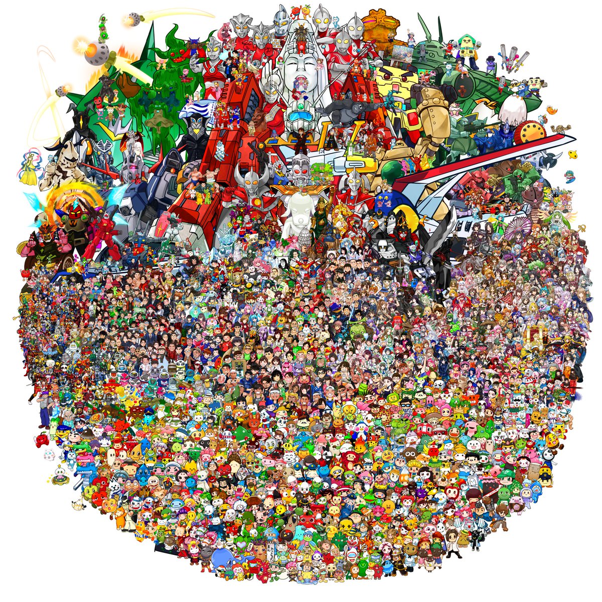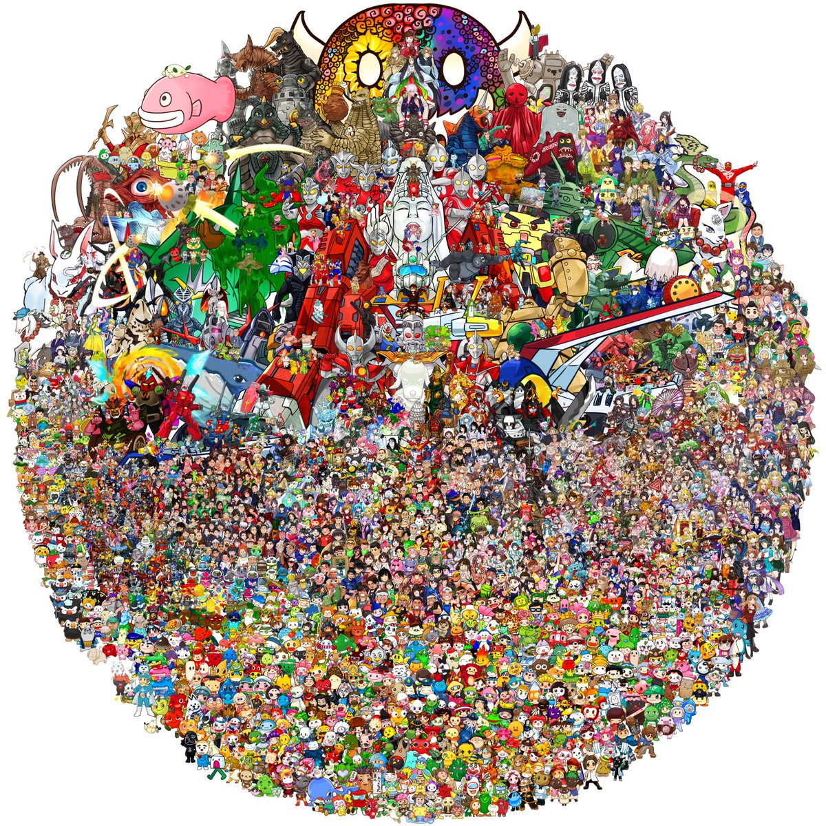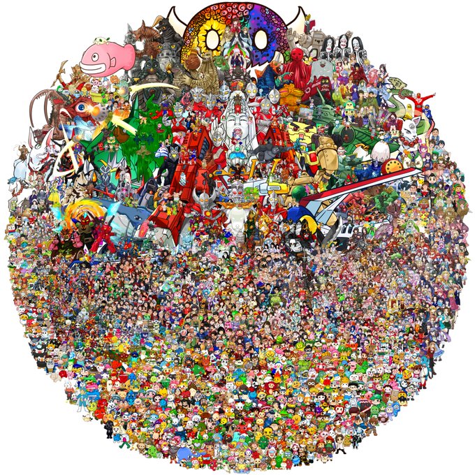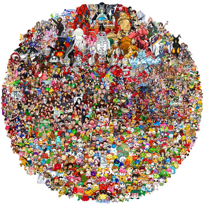 2019年から一枚ずつ似顔絵や立ち絵を少しずつ描いて パズルのように貼っつけると… 【#東北あべんじゃぁず】 という【#集合絵】が 出来上がり1500体以上集まる大作が出来上がりました。 #フォロワー1万人以下の絵師が力作を投稿してたくさんのフォローを貰うタグ 画像のサイズ 9000×9000(px)