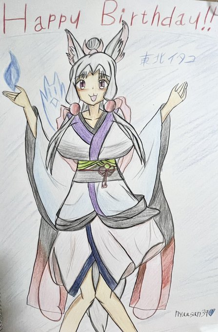 イタコさん誕生日おめでとうございますー! 今年でようやく巻き戻りの呪いで成人できなかったけれどついに成人に! …まあ飲酒関係はだめなんだけどねぇ。 #東北イタコ #東北イタコ生誕祭 #東北イタコ生誕祭2022