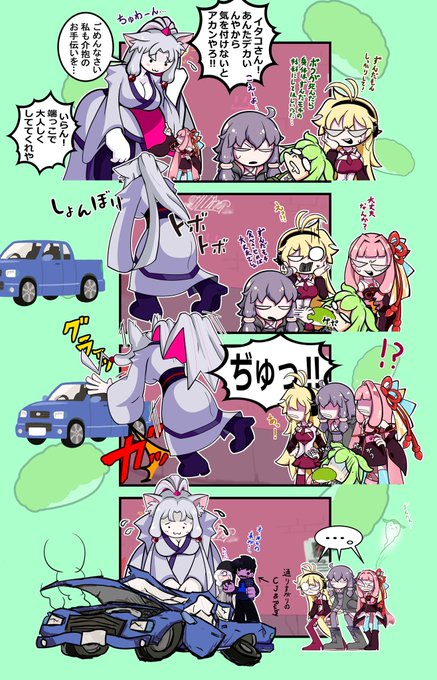 イタコさん4コマ! リンクのずんだもん不遇4コマの続きです🍀 身長3メートルはメリットとデメリットどちらの方が大きいかな❓ #東北イタコ #ずんだもん #琴葉茜 #結月ゆかり #ツルマキマキ #東北イタコ軽トラバンパーベコベコ部 #fridaynightfunkin twitter.com/ganonyuta/stat…