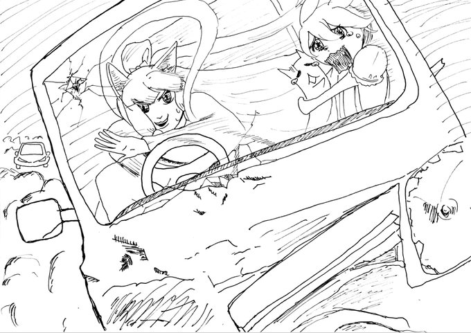 🟢「い、イタコぉ!やめるのだ!いくら賞金に目がくらんだからって!軽トラでラリー参加は無理があるのだ!」 🦊「しゃべると舌噛みますわよ!」 #東北ずん子深夜の真剣お絵描き60分一本勝負 テーマ【ラリー】 #東北イタコ軽トラバンパーベコベコ部 #どんどん土曜日ずんだもん