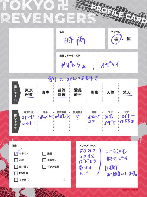 東リべのお話できるお友達欲しいのでタグ失礼します🙏 関西でのんびりまだ一虎だけですがやってます! バジトリオ大好き野郎の本誌勢です! #東リベレイヤーさんと繋がりたい #東卍レイヤーさんと繋がりたい #東卍好きさんと繋がりたい