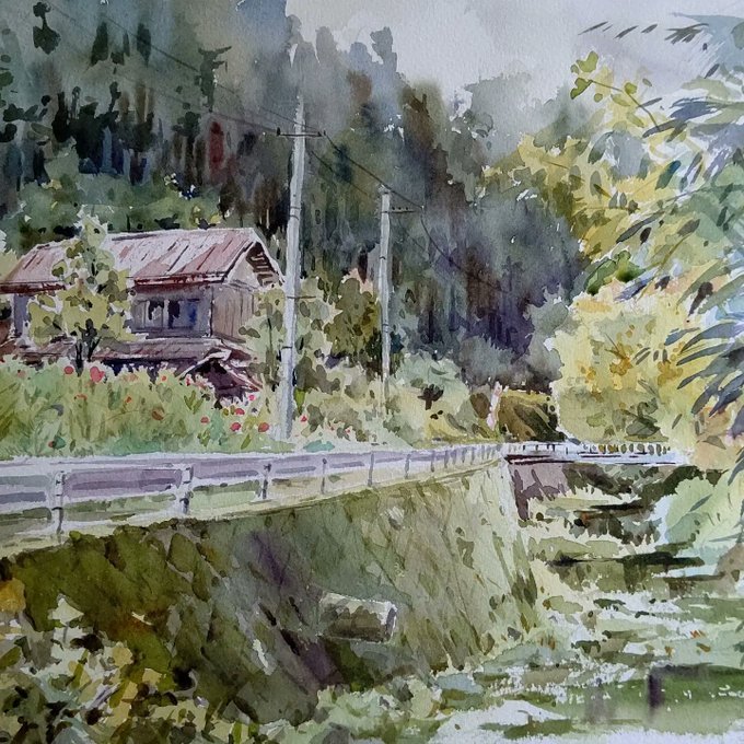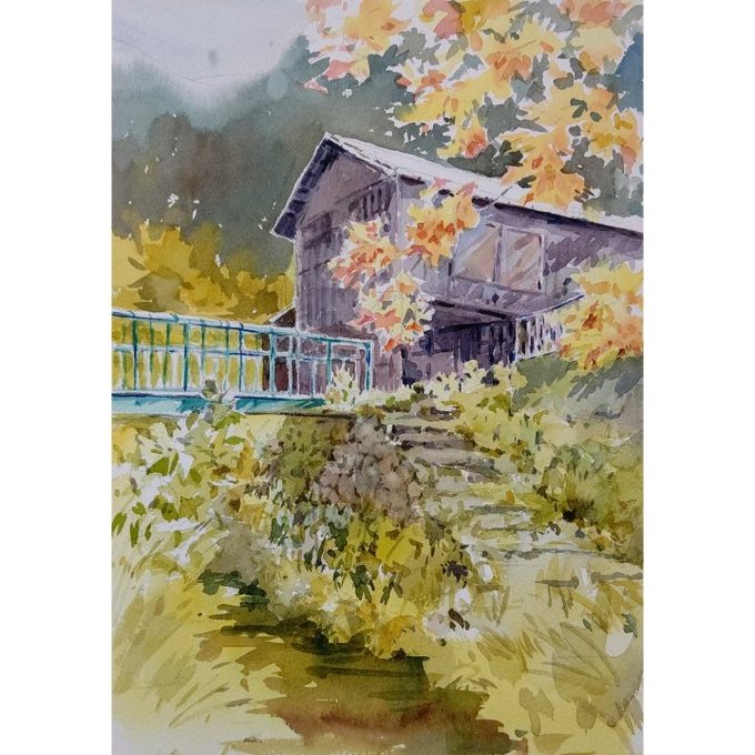 先週出掛けた秋の気配を感じる里でのスケッチです。#野外スケッチ #透明水彩画 #水彩画 #写生 #風景画 #東吾野 #outdoorsketching #watercolour #watercolor #landscapepainting #sketch #higashiagano #aqurelle