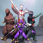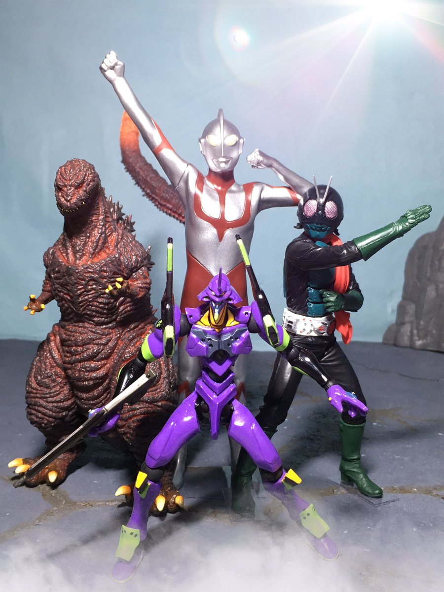 #夜のフィギュア撮影会 お題『フリー』 シン・ジャパン・ヒーローズ・ユニバース! #シン・ウルトラマン #シン・仮面ライダー #シン・ゴジラ #エヴァンゲリオン #メガライトヒーローズ #英雄勇像 #東宝怪獣コレクション #リボルテック #オモ写