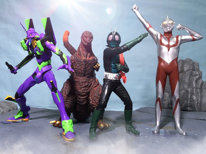 #夜のフィギュア撮影会 お題『フリー』 シン・ジャパン・ヒーローズ・ユニバース! #シン・ウルトラマン #シン・仮面ライダー #シン・ゴジラ #エヴァンゲリオン #メガライトヒーローズ #英雄勇像 #東宝怪獣コレクション #プライズ #バンプレスト #オモ写