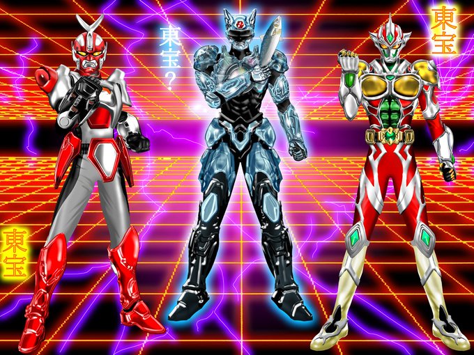 東宝ヒーロー!!!俺?!サバじゃねぇ!★東宝的3ヒーロー初集合♥ #超光戦士シャンゼリオン #電脳警察サイバーコップ #七星闘神ガイファード #サバじゃねぇ! #東宝特撮 #変身ヒーロー pixiv.net/artworks/99104…
