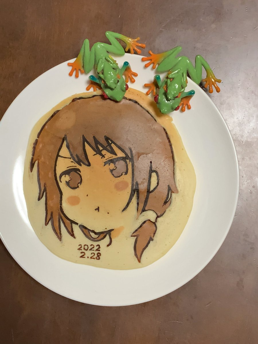 東先生お誕生日おめでとうございます!🎉🎁🎂 ちょっと焦げてしまったからムスッとされた😅 #東志帆子生誕祭 #東志帆子生誕祭2022 #ゆるゆり活動日記 #パンケーキアート #pancakeart