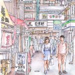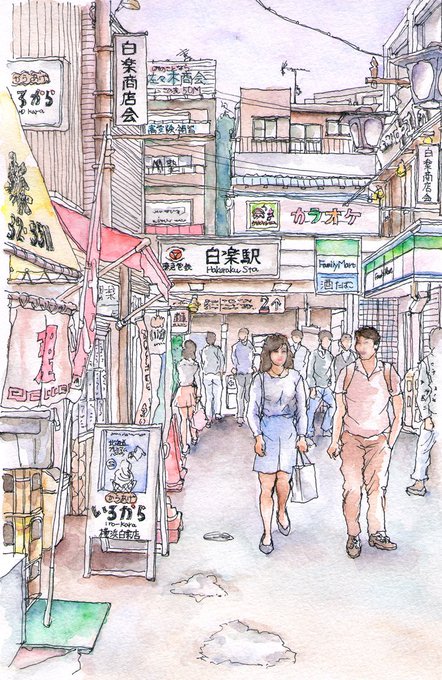 東急東横線白楽駅前の風景です。#東急東横線 #風景画 #スケッチ #白楽 #横浜 #ペン画 #水彩画 #絵画 #landscape #watercolorpainting #watercolor
