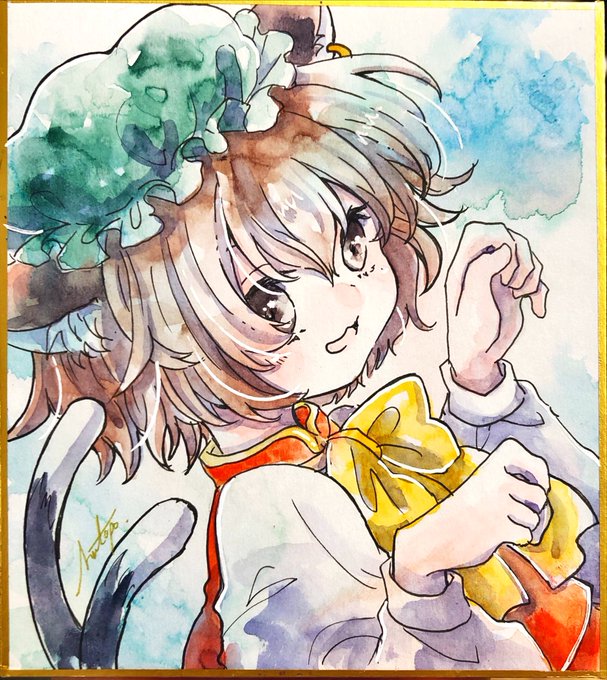 玖尾もふもふ(@kuo_mfmf)さんに塗っていただきました! 塗り込みがしっかりしていて、それぞれの色がしっかり主張されたいい塗り上がりになっています!服と帽子で濃さの違いが出ているのも素晴らしいです! ありがとうございましたー! #東方名華祭 #幻想郷のおえかき道場