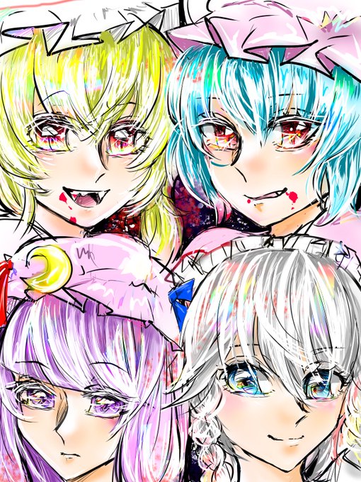らくがきー💕❗️紅魔館もっといるんだけど、とりあえずメイン4人だけ🫠❤️ #東方Project #東方幻想郷 #東方プロジェクト #レミレア・スカーレット #フランドール・スカーレット #パチュリー・ノーレッジ #十六夜咲夜