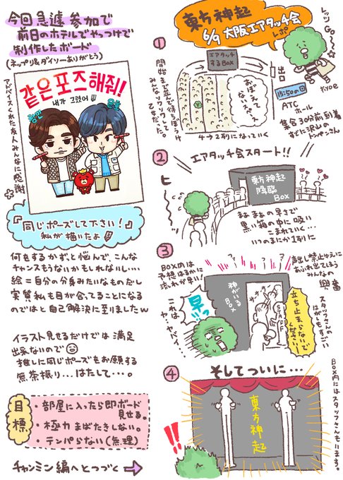 エアタッチ会行ってきました! 本当に行けて良かった…始まったらもう一瞬だったけどw😂 昨日急遽ホテルで作ったボードの無茶振りもしてくれてユノ&チャンミンありがとう〜!(正直無理だと思ってた🥲) また自分にも記憶に残しておきたいのでレポ頑張って描いてみますー! #東方神起エアタッチ会