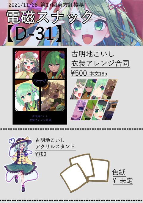 秋季例大祭8・紅楼夢17のサークルカット #東方Project #サークルカット #古明地こいし #九十九八橋 #東方紅楼夢17 #博麗神社秋季例大祭8 pixiv.net/artworks/93975…