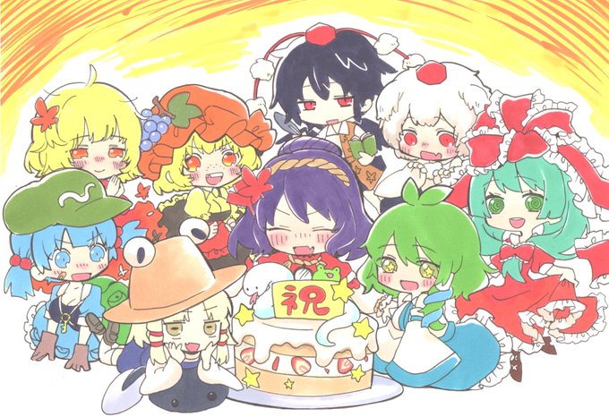 うぉるさん主催の守矢神社合同にイラスト1枚参加させて頂いております…!٩( 'ω' )و✨️ なんと8ヶ月振りの東方絵&10年振りの風神録集合絵を描きました!!! 何卒宜しくお願いしますー!! #守矢合同 #東方風神録15周年 twitter.com/whorusan/statu…