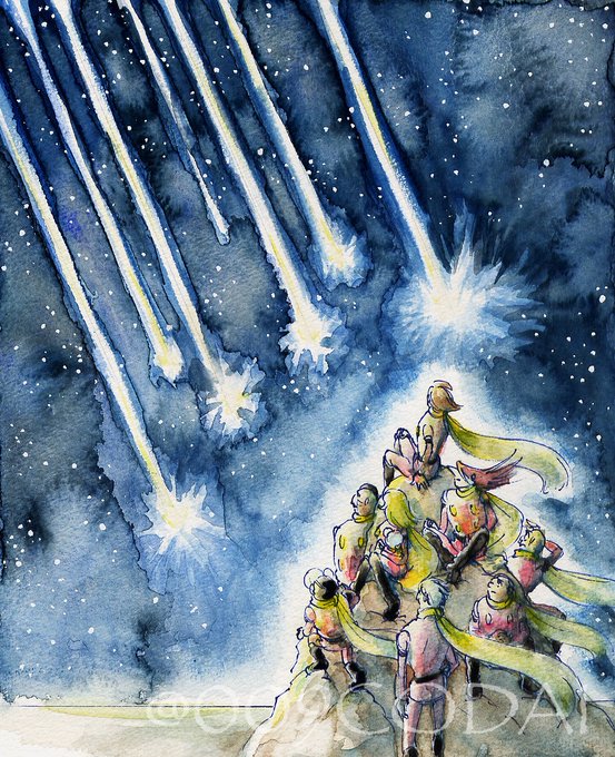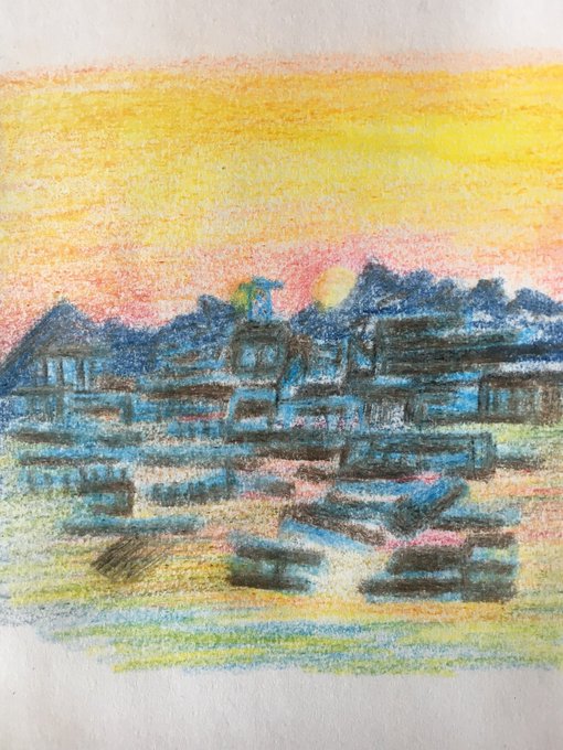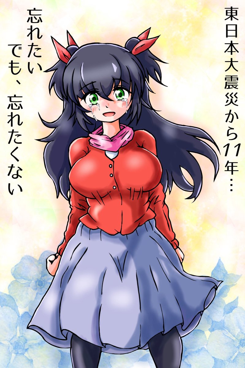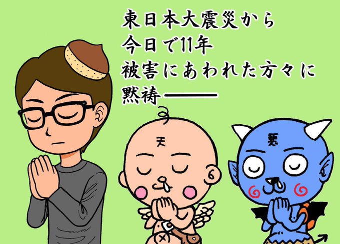 あの時は近所に買い物に行ってて店内が凄く揺れて慌ててマンションに戻りました、私が帰った直後にエレベーターが止まり旦那は11階まで階段で上がって来たw ずっと情報をTVで観ててその夜にこのイラストを描きました あれから時間は沢山あったのに復興進んで無いね #東日本大震災から11年