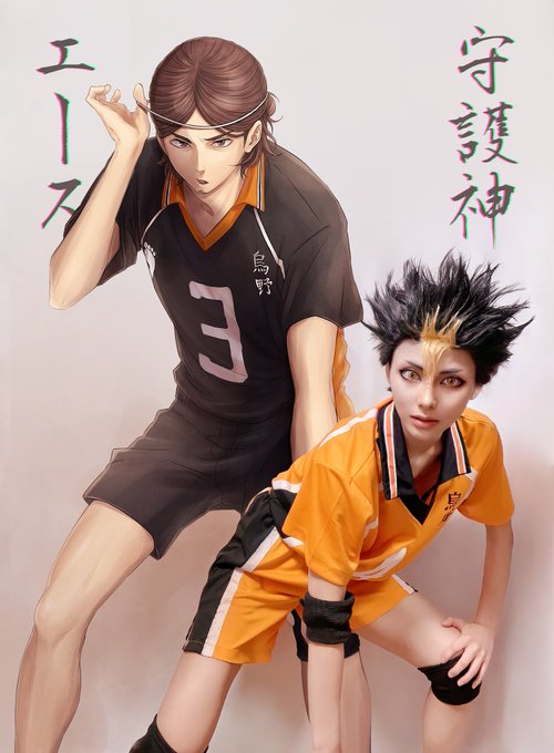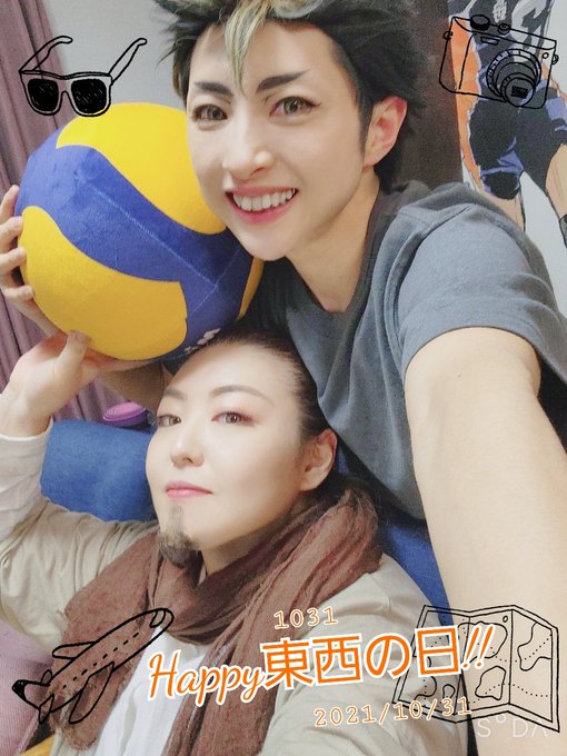 #東西の日 #3月4日は東西の日 東西の日おめでとう!! なんと、けいこさん @KeikoTOUKA のイラストとコラボさせていただきました✨✨ 西谷コスで、かっこよくて美麗なけいこさんの旭さんと並び立つ日が来るとは……!! 最高の企画をありがとうございます🙏 東西よ、永遠なれ!🏐