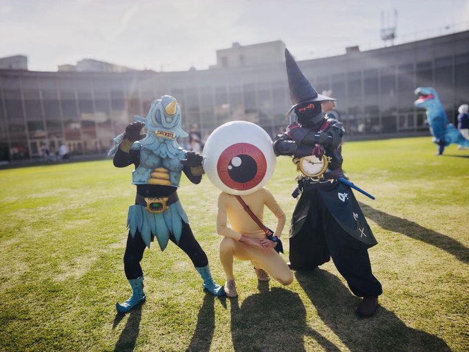 #コスプレ #東郷乱舞 #東郷乱舞春の大運動会 忍魔レオさん(@fbfighter07)から お写真頂きました。感謝ァ🥲 怪人(?)三人衆! アマゾーラ(@fbfighter07) 目玉おやじ(@TappuObasan) 黒魔道士もどき