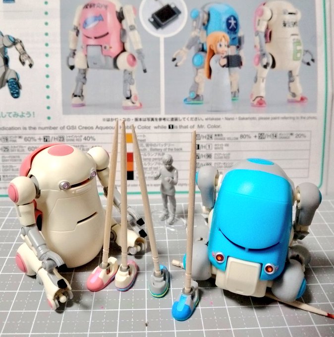 ウォーム&クール成型色仕上げ 細部🖌塗り分けも省略せずに真面目に塗ってみました😅 あとは楽しいデカール貼り付け #メカトロウィーゴ #東雲研究所 twitter.com/sweecha01/stat…