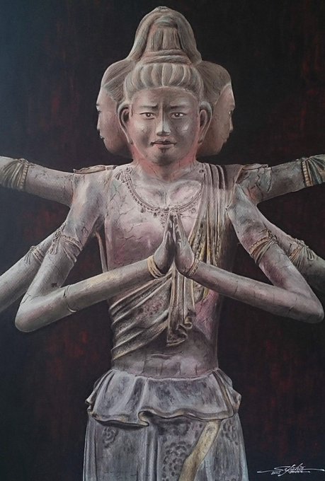 おはようございます(*^^*) 多忙の為、過去絵をUPしております。 ■私の故郷、大分県臼杵市『国宝・臼杵磨崖仏 大日如来像 修復前』(’12.06 水性アクリル画) この絵は昨年「ターレンス賞」を頂きました。 今日も宜しくお願い致します🙏 #臼杵石仏大日如来像 #ターレンス賞 #松井秀峰