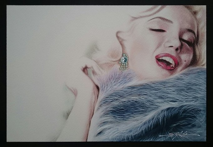おはようございます(*^^*) 諸々 多忙の為、過去絵をUPさせて頂きますので悪しからず… ■マリリン・モンロー(’13.06 色鉛筆、水性アクリル画) ’62「女房は生きていた」より。 マリリンのファイナルムービーです😭 今週も宜しくお願い致します🙏 #マリリン・モンロー #松井秀峰