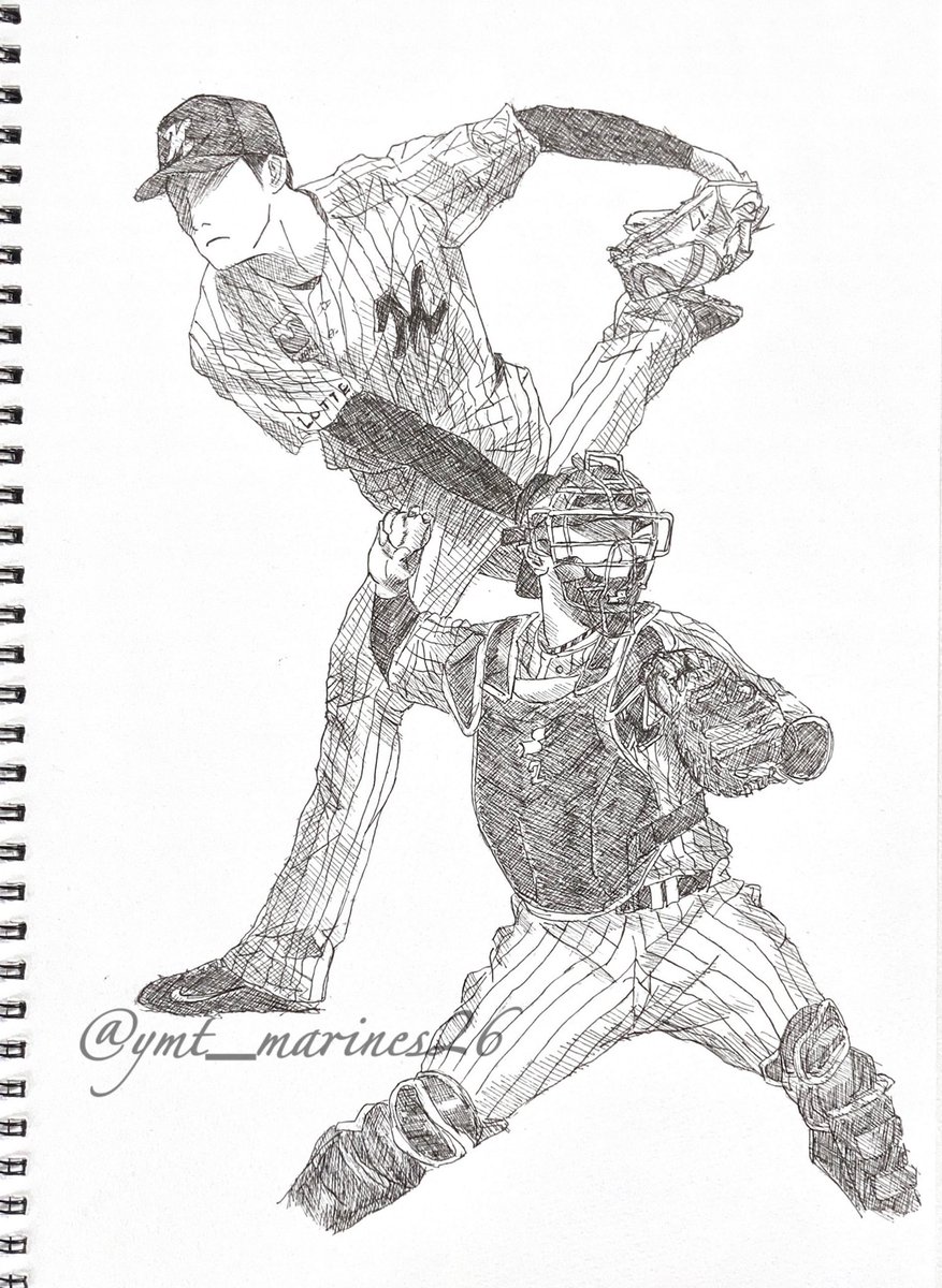 弱冠二十歳の怪物と、 人生18年目のベテラン。 完全試合バッテリー。 #佐々木朗希 #松川虎生 #千葉ロッテ #プロ野球 #イラスト #似顔絵 #イラスト好きな人と繋がりたい #絵描きさんと繋がりたい