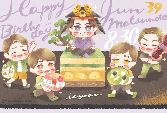 ノノ`∀´ル今日って俺の誕生日じゃないの?! (´・∀・`)(.゚-゚)( ‘◇‘ )翔くんだけずるい~俺たちのは~? #松本潤誕生祭 #松本潤誕生祭2022 #MJHBDイラスト2022 #祝39歳HBDイラスト2022