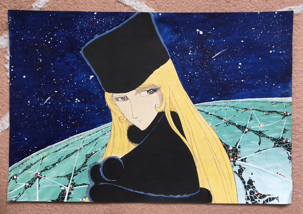 確か劇場版999を観て感動して描いたメーテル。何故か手元に残ってた😓 アニメーターになるちょっと前くらい。 イラストの描き方とか全く分からないので、とにかく水彩やサインペンで色付けした💧 #松本零士 #銀河鉄道999 twitter.com/jetikariya50/s…