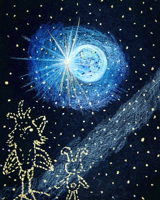 朝日が水平線から 光の矢を放ち 二人を包んでゆくの 瑠璃色の地球 松田聖子さんの「瑠璃色の地球」のイメージを絵にしてみました #瑠璃色の地球/#松田聖子 #神田沙也加 youtube.com/watch?v=GjriDr… 今となってはもう実現することのない二人のデュエットです #色鉛筆画 #絵描きさんと繋がりたい