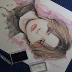 最後見直したら完成です。お風呂行きまーすε=(ノ゚Д゚)ノフライングタイガーの筆ありがたい‼️ #絵描きさんと繋がりたい #イラスト好きな人と繋がりたい #似顔絵 #人物 #コピック #パステル #松田迅 #水彩
