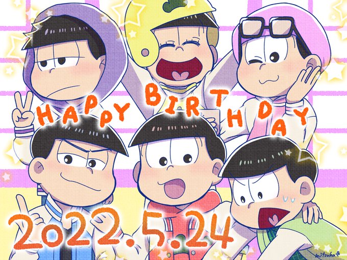 #5月24日はおそ松さん6つ子の誕生日 #松野家6つ子生誕祭お祝いイラスト #松野家6つ子生誕祭2022 #6colorでお祝い #오소마츠상_생일축하해_2022 ❤💙💚💜💛💗 2022년도 생일축하해!!!↗️🎉 오탄죠-비오메데토오!!! ❤️💙💚💜💛💗