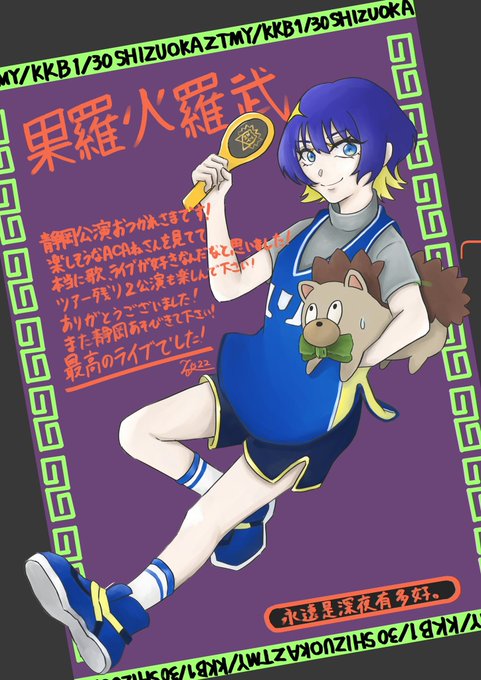 果羅火羅武〜静岡ありがとうございました🍵🎵いつかの次の静岡公演の際には網焼き弁当に加えてぜひ炭焼きレストランさわやかのハンバーグも食べてくださいฅ^. ̫ .^ฅ超美味しいです🥳 ジャナにらちゃんに食べてもらったあ #ずとまよファンアート #ずっと真夜中でいいのに #果羅火羅武