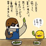 🐱🍺 #枝豆 たまに、妙に食べたくなって、突然買ってきて茹でます。 ビール、お酒は全く飲めないので飲みません(笑)🤣 🐱 この前テレビで、新潟の枝豆が美味しい、というのを見ました。食べてみたいです😳 焼き枝豆って美味しそう☺️ #イラスト #illustration #猫好きさんと繋がりたい #ねこ