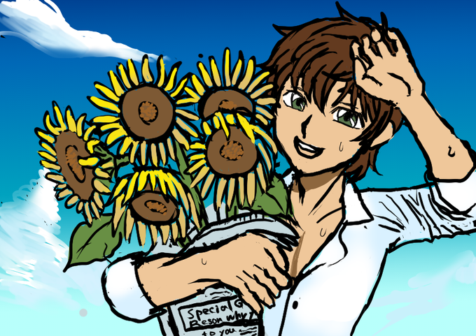 It was a hot summer day in the sunflower field. #codegeass #cosplay #suzakukururugi #kururugisuzaku #suzaku #コードギアス #枢木スザク #枢木朱雀