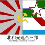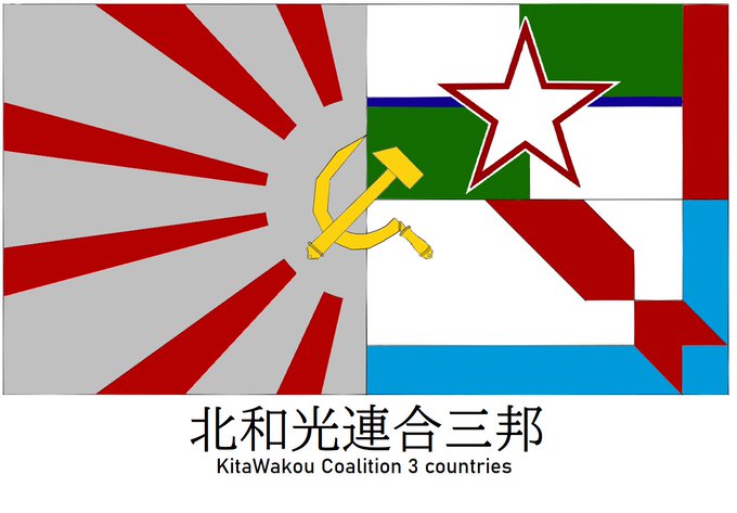 #架空国旗 #イラスト #K_Wakou_3c [架空国家] 北和光連合三邦[K_Wakou_3c] 首都 占幌別(シムホロペツ) 構成国 登茶府自治共和国(旧名:北和光社会主義人民連立委員会),萌徒葉自治社会主義共和国,樫湯裳社会主義人民共和国