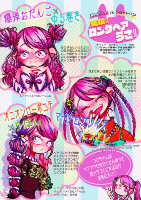 架空雑誌『Fashionista』 ロングヘアvs ショートヘア 先攻‼︎ロングヘアうさ‼︎ #イラスト好きな人とつながりたい #絵描きさんとつながりたい #illustration #架空雑誌