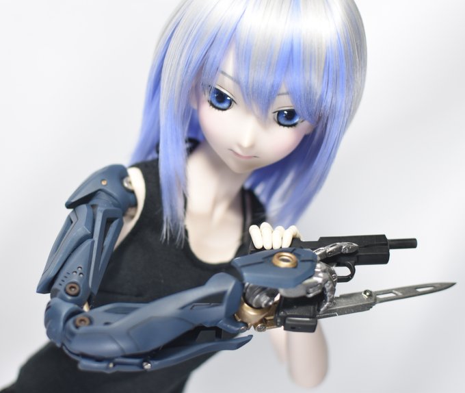 今夜のお題は【 おきにいり】「既出」 お気に入りと言ったら柊伽工造さんの武装義手✨ ちなみに衣装に合わせて左右使い分けてたりします(´∀`*) #今夜のドール撮影120分一本勝負 #柊伽工造