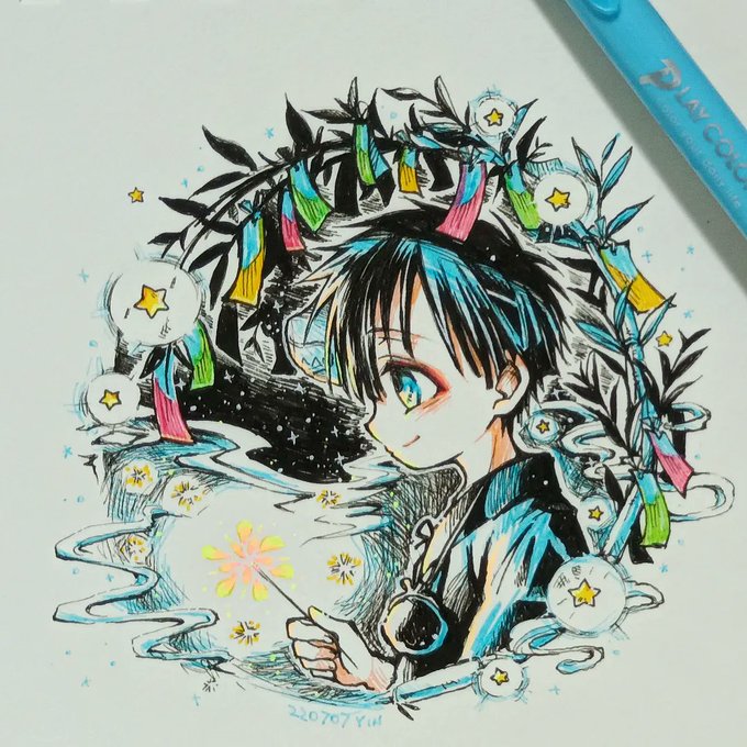 時期はずれですが... とても好きなお話なので投下 【星祭り】✨🎋 #地縛少年花子くん #イラスト #柚木普 #絵柄が好みって人にフォローされたい #絵描きさんと繫がりたい #絵描きさんフォロバ100