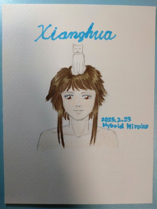 昨日は猫の日だったんで😺 香華と猫を描きましたぁ〜✏️🖌️ 装備パーツの上段と中段が破壊されたんでw😅 #猫の日 #格ゲーキャラ描こうぜ #ソウルキャリバー6 #柴香華 #コピックイラスト #ひろこみっく