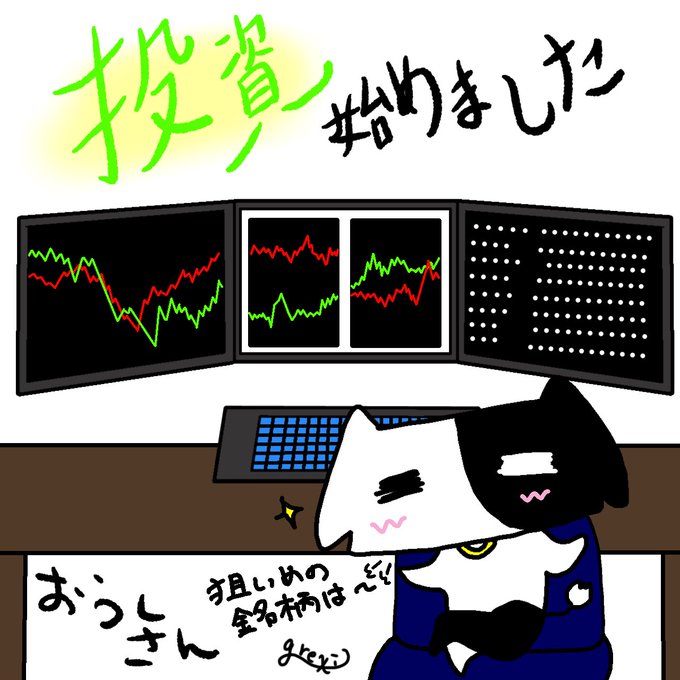 ご主人の旦那が投資をしてたから僕も初めてみたよ! 難しいけど増えると凄く嬉しいね!!! #おうしさん #お動物さん #ゆるキャラ #ゆるいイラスト #絵描きさんと繋がりたい #イラスト好きと繋がりたい #投資 #株
