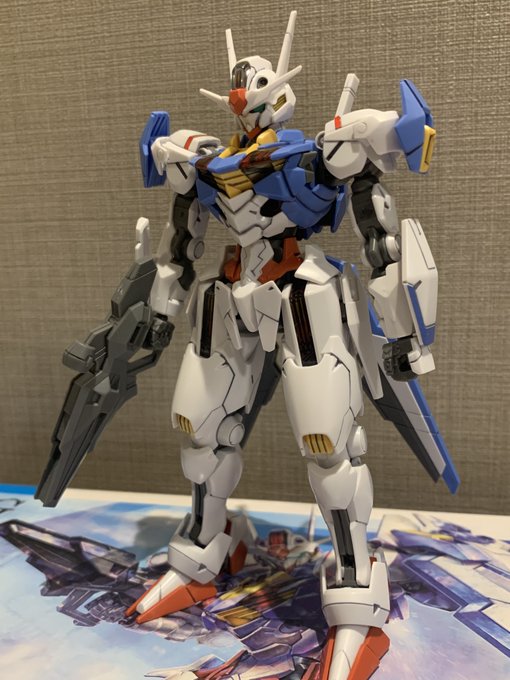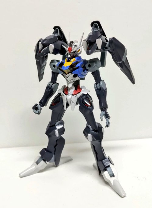 エアリアル完成しました😍 素組、墨入れだけやったんですがめちゃくちゃカッコよです😍1000円台でこんなすごいのが手に入るんだな〜 #株式会社ガンダム #水星の魔女 #ガンプラの画像貼るとRTされると聞いて