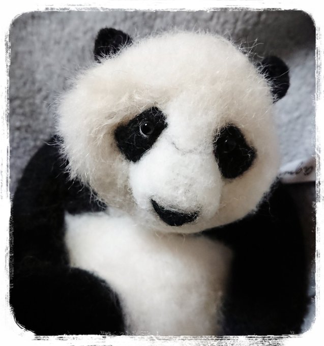 桃浜の顔のボリュームが出ないから植毛中❣️上手く🍙に仕上げなきゃ! 日に日に大きくなって行く桃ちゃん…今ソフトボール🥎くらいです😅 #ジャイアントパンダ #桃浜 #羊毛フェルト #アドベンチャーワールド