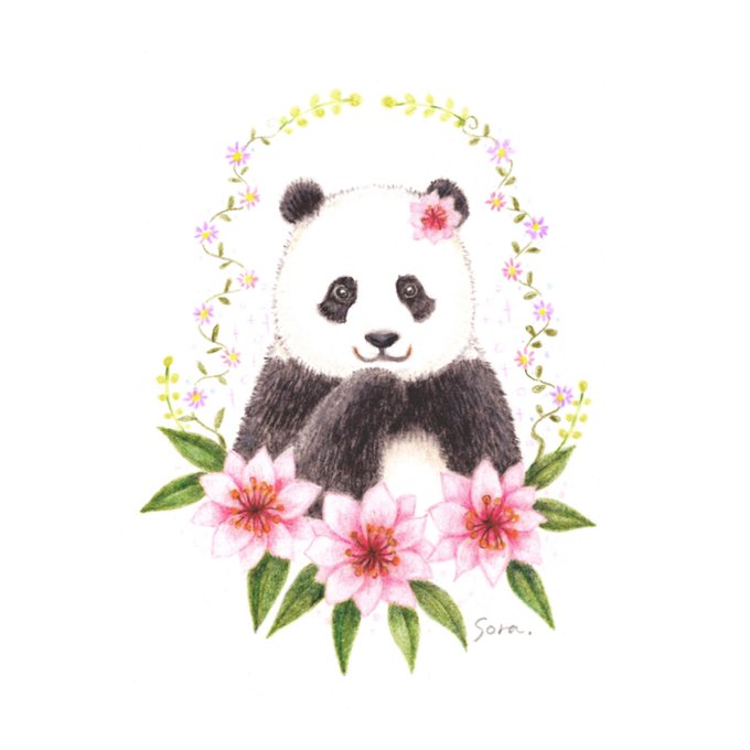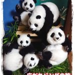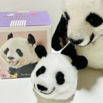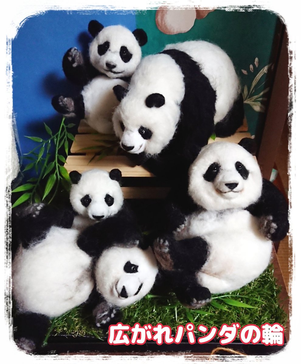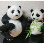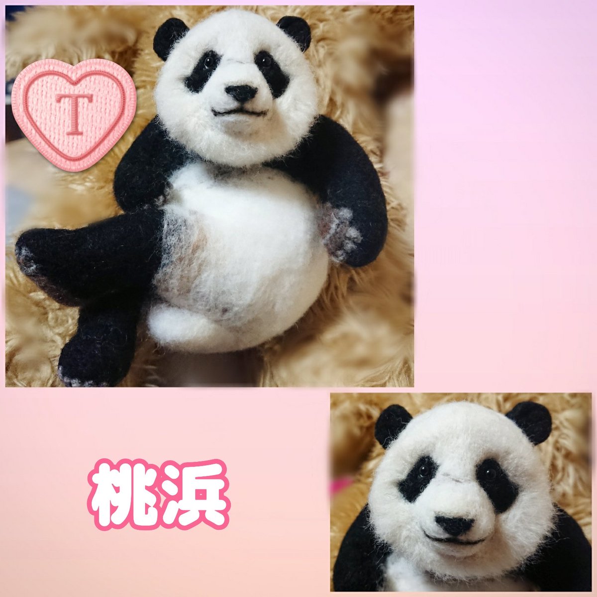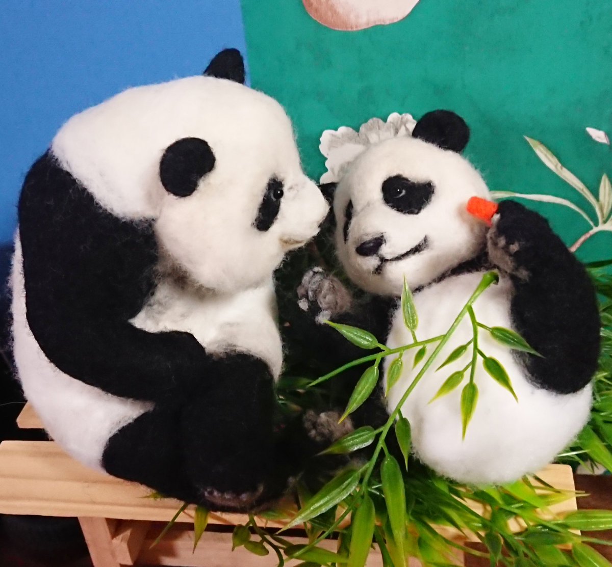 先程の桃浜と以前の楓浜を並べてみました!🍁『桃ねーたんカイカイなん?』🍑『めっちゃカイカイやねん💧楓ちゃんカキカキしてくれる?』🍁『うん!楓がカキカキする~』 #アドベンチャーワールド #楓浜 #桃浜 #浜家 #ジャイアントパンダ #羊毛フェルト