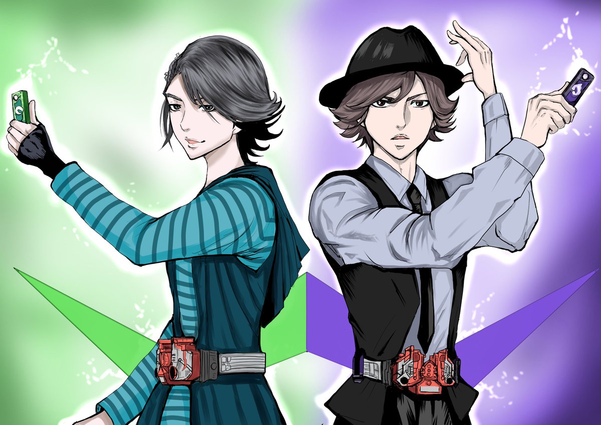 #火金お絵描き おはよう御座います🌞✨ #色鉛筆画 の #似顔絵 の新作進捗❣️ 「#仮面ライダーW」フィリップくんと翔太郎くん👨❤️👨✨ 色鉛筆画の人物に、Photoshopで衣装をプラス💻️✨ ようやっと(笑)、完成に至りまスた~ッッヽ(゜▽、゜)ノ✨ #おは戦41104nk🍺 #桐山漣 #菅田将暉 #仮面ライダーイラスト