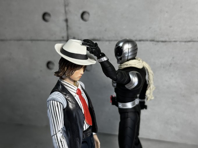 #俺得シチュエーション 「帽子が似合う男になったな、翔太郎」 「…!!…おやっさん!!……おやっ…」 「俺…少しはアンタに近付けたかな…?」 #仮面ライダーW #風都探偵 #左翔太郎 #桐山漣 #自作フィギュア #フィギュアーツ写真部