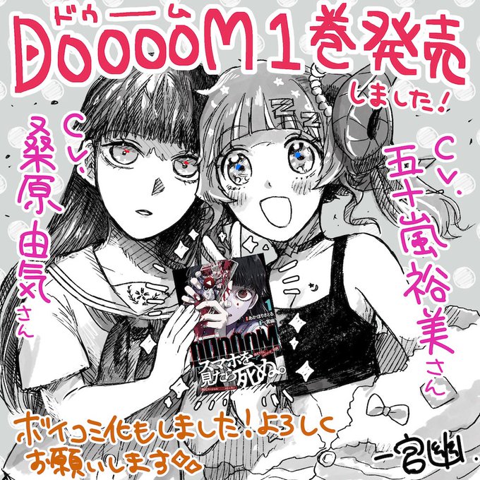 「DOOOOM-ドゥーム-」1巻本日発売です🎉✨ 発売記念に、ねむる達がボイコミ化しました! 斬裂ねむる CV: #五十嵐裕美 坂本里依紗 CV: #桑原由気 動画:youtu.be/0iRgIKTHIlI よろしくお願いします!