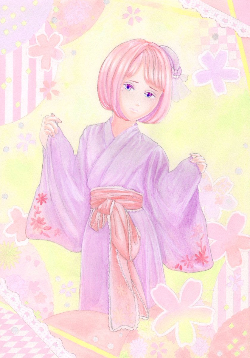 おはこんにちは 桜を見に行く予定でしたが風邪気味なのでやめときました(゚ ˙-˙ ゚ )゚ いつかの桜🌸サクラ🌸さくら 良い一日をお過ごしください🌸🌸 #着物 #桜イラスト #CherryBlossom